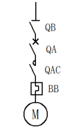 1、采用傳統的分立元器件構成的電控系統;隔離器(QB+斷路器(QA+接觸器(QAC+熱繼電器(BB),見圖1