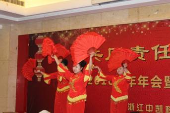 1226日晚,中凱以“共同責任,共謀發展”為主題的喜迎2016新年年會暨2015年度先進表彰大會在夏威夷大酒店隆重舉行,公司董事長兼總經理屠瑜權、各合作單位代表嘉賓及公司全體員工歡聚一堂,共同分享喜悅,展望新年。